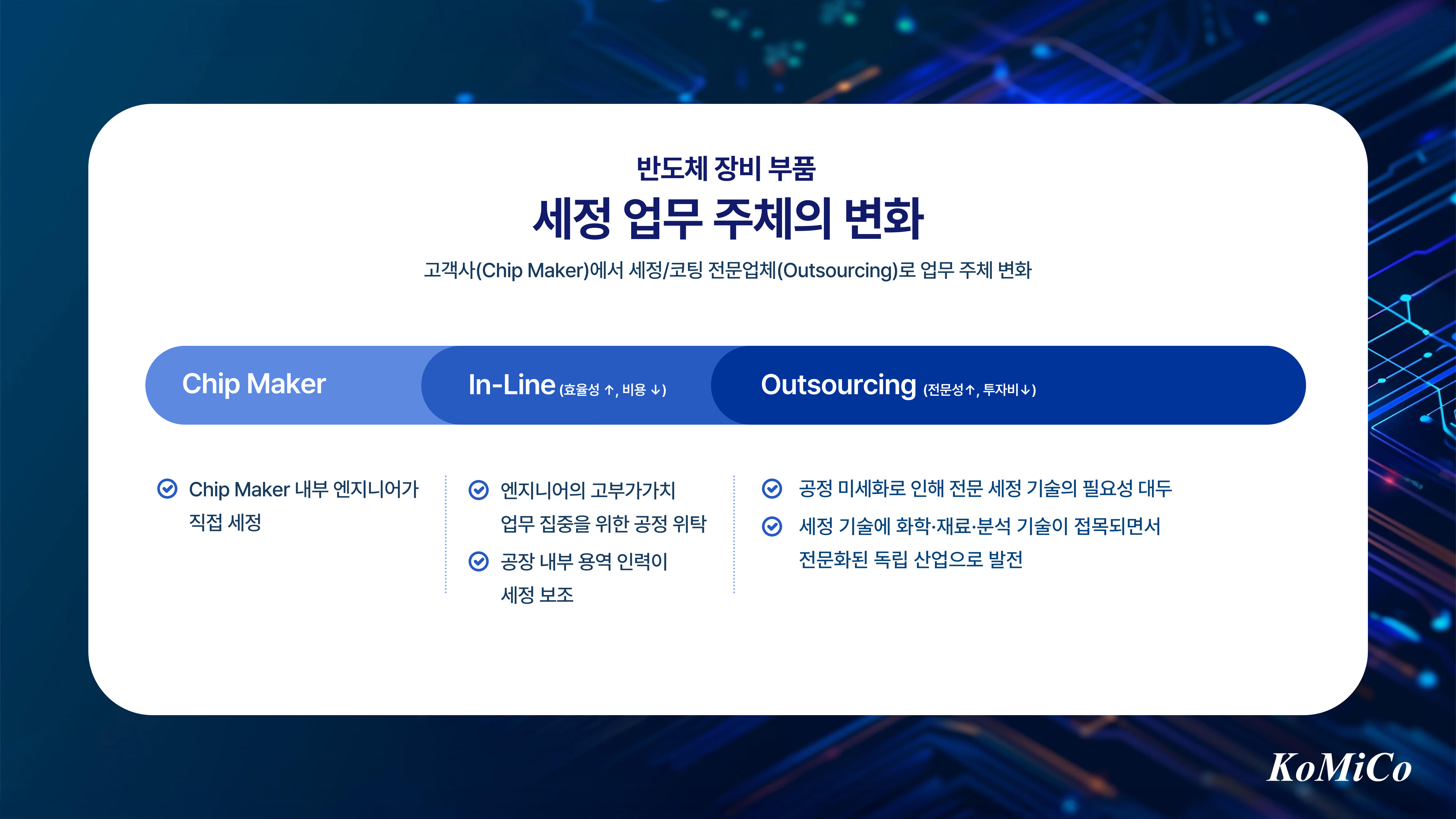 이러한 성장의 흐름 속에서 코미코와 같은 전문 반도체 장비부품 세정/코팅 기술 서비스 기업이 등장해 산업의 안정적인 발전을 뒷받침하게 되었습니다.