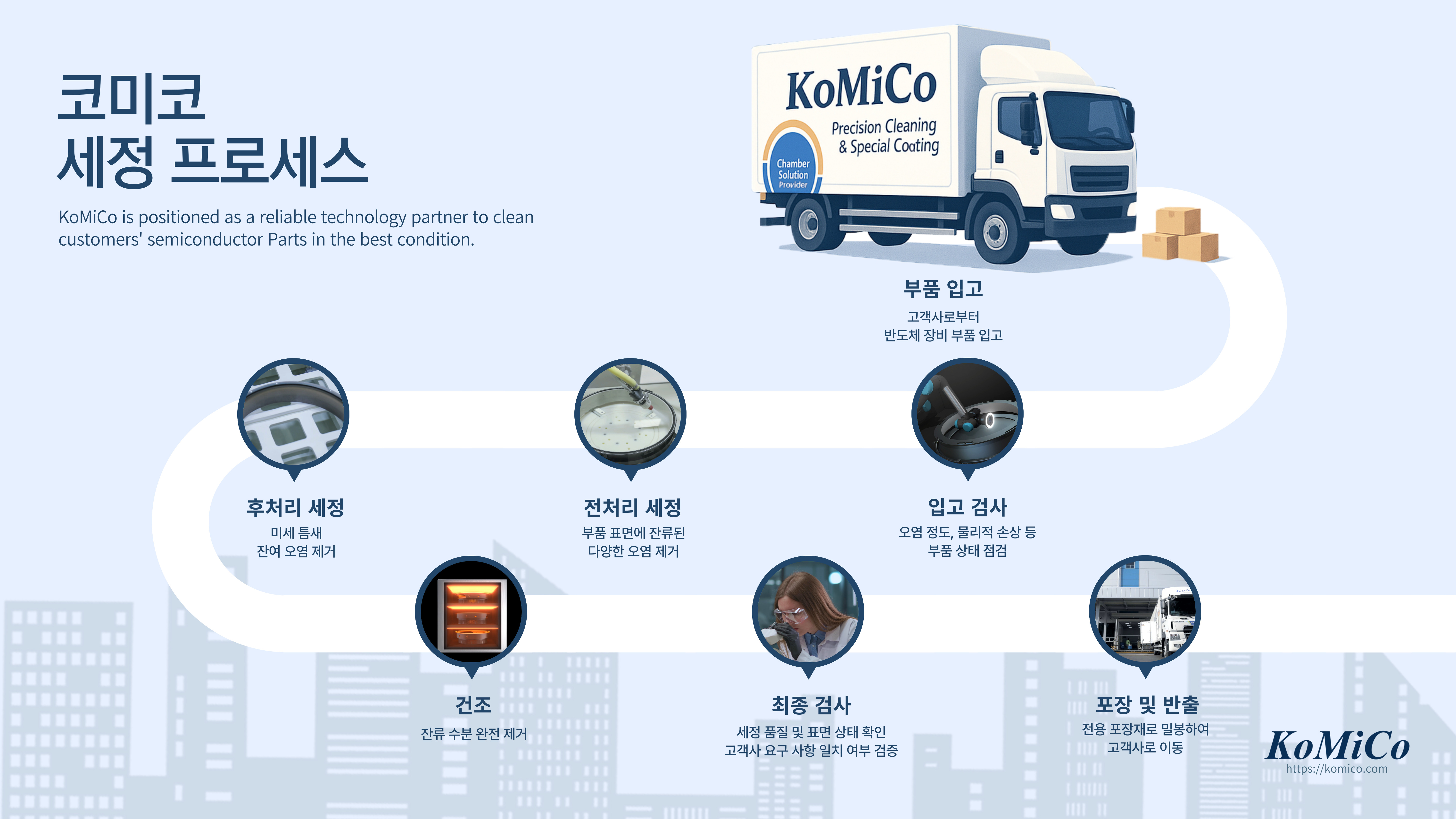 지난 3월 25일부터 27일까지 중국 상하이 SNIEC(상하이 국제 엑스포 센터)에서 개최된 SEMICON China 2026이 성황리에 마무리되었습니다.이번 전시회는 글로벌 반도체 산업의 최신 기술과 트렌드를 한눈에 확인할 수 있는 자리였으며, 코미코 역시 참가하여 전 세계 다양한 고객 및 파트너들과 뜻깊은 시간을 보낼 수 있었습니다.전시 기간 동안 코미코 부스에는 많은 방문객이 찾아주셨습니다.기존 고객뿐만 아니라 신규 고객, 그리고 반도체 부품 코팅 및 세정 기술에 대해 처음 접하는 분들까지 다양한 산업 관계자들과 직접 소통할 수 있었던 점이 특히 인상 깊었습니다.현장에서 가장 많은 관심을 받은 부분은 단연 반도체 공정 내 수율 향상(Yield Improvement)과 관련된 솔루션이었습니다. 최근 ..