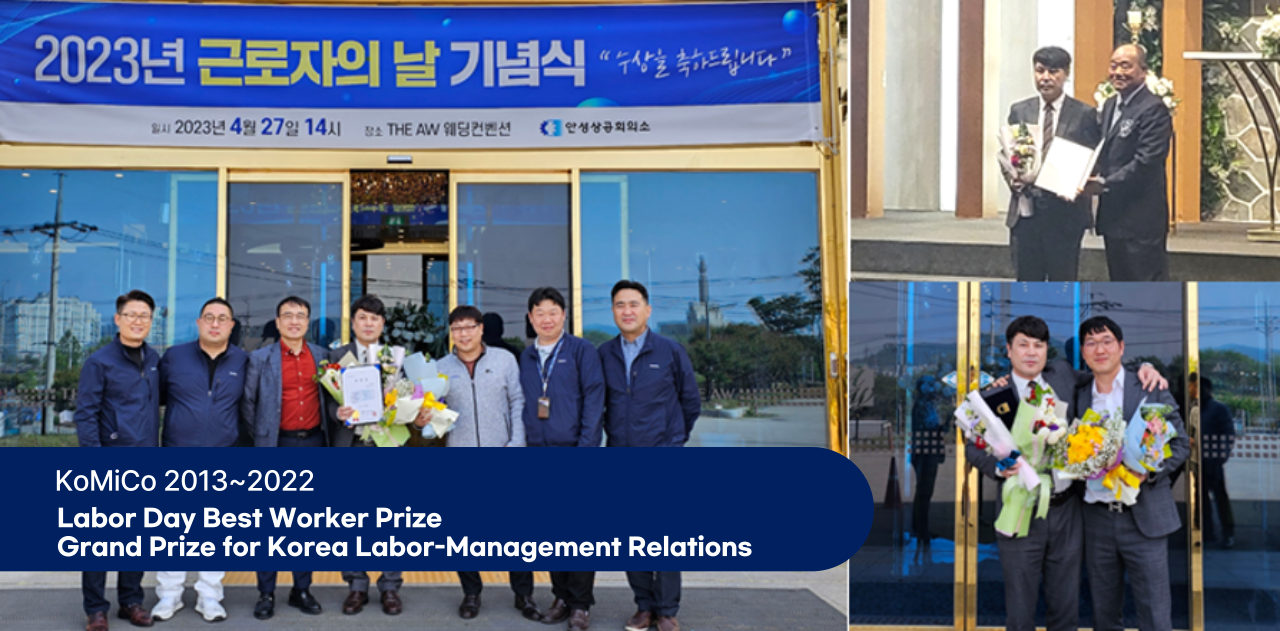 KoMiCo, specialized cleaning and coating company of semiconductor parts and equipment, was recently awarded the Grand Prize for Korea Labor-Management Relations which is given to a company to keep growing and developing via mutual cooperation between labor and management.
